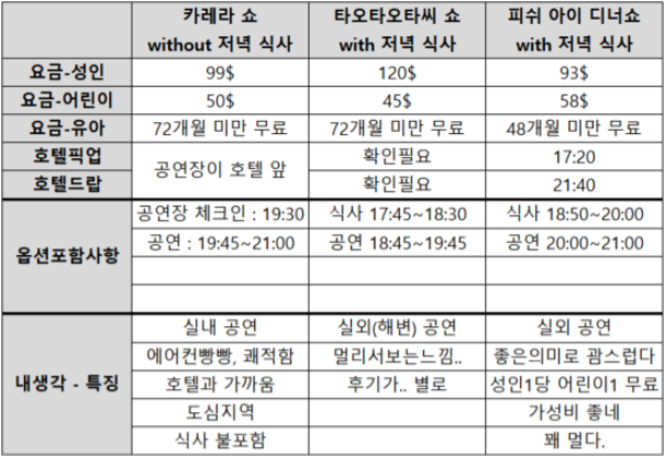 카레나 쇼(KARENA) 관람을 위해